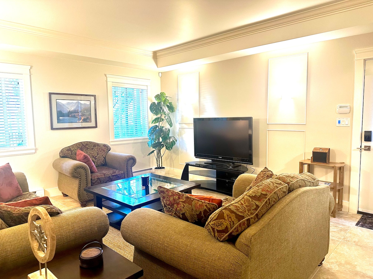 Enjoy ocean, mountain, and city views as well as spectacular sunrises in our beautiful newly renovated suite. Suite is very quiet and has gas fireplace, ambient lighting, rain shower, heated floors in bathroom, large flat screen TV, high end appliances, gas BBQ, & an outdoor sitting area all at your disposal. Located at the end of a quiet cul-de-sac but close to swim lakes, hiking paths, golf courses, beaches, Costco, grocery stores, bakeries, restaurants, and lots more; 3-8 minutes away by car.