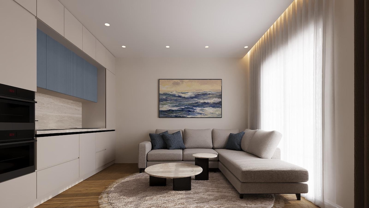 Deluxe Garden Apartment – Seaside Sanctuary (98 sqm) Just a two-minute walk from the sea, this tranquil garden apartment is a hidden gem nestled in a peaceful village and surrounded by pine trees. Designed for comfort, style, and serenity, it offers modern amenities, privacy, and a lush garden—perfect for couples and families seeking a luxurious seaside escape. If you're dreaming of a seaside getaway that combines nature, luxury, and relaxation, this is the place.
