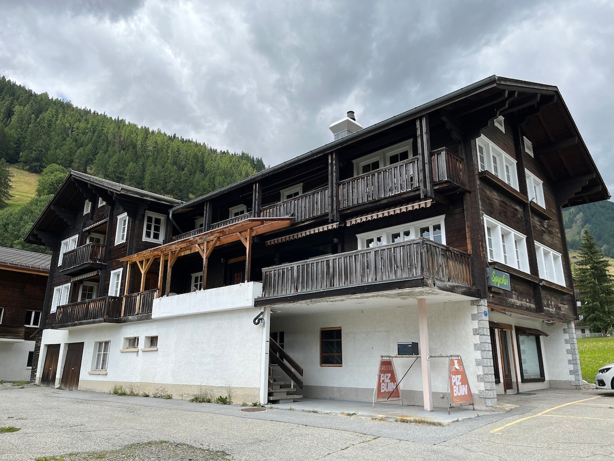 Welcome to our cozy 2-room apartment in Obergesteln, Goms! Located directly on the cross-country ski trail, it is ideal for sports and nature lovers. Perfect for 2 adults with children or for up to 4 adults. In winter, deep snow-covered nature beckons, in summer, fantastic hiking and cycling trails. Experience relaxation and adventure in the middle of the Valais Alps!