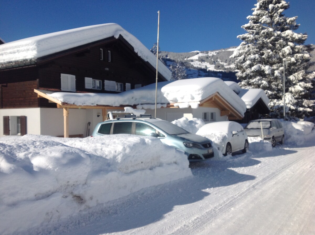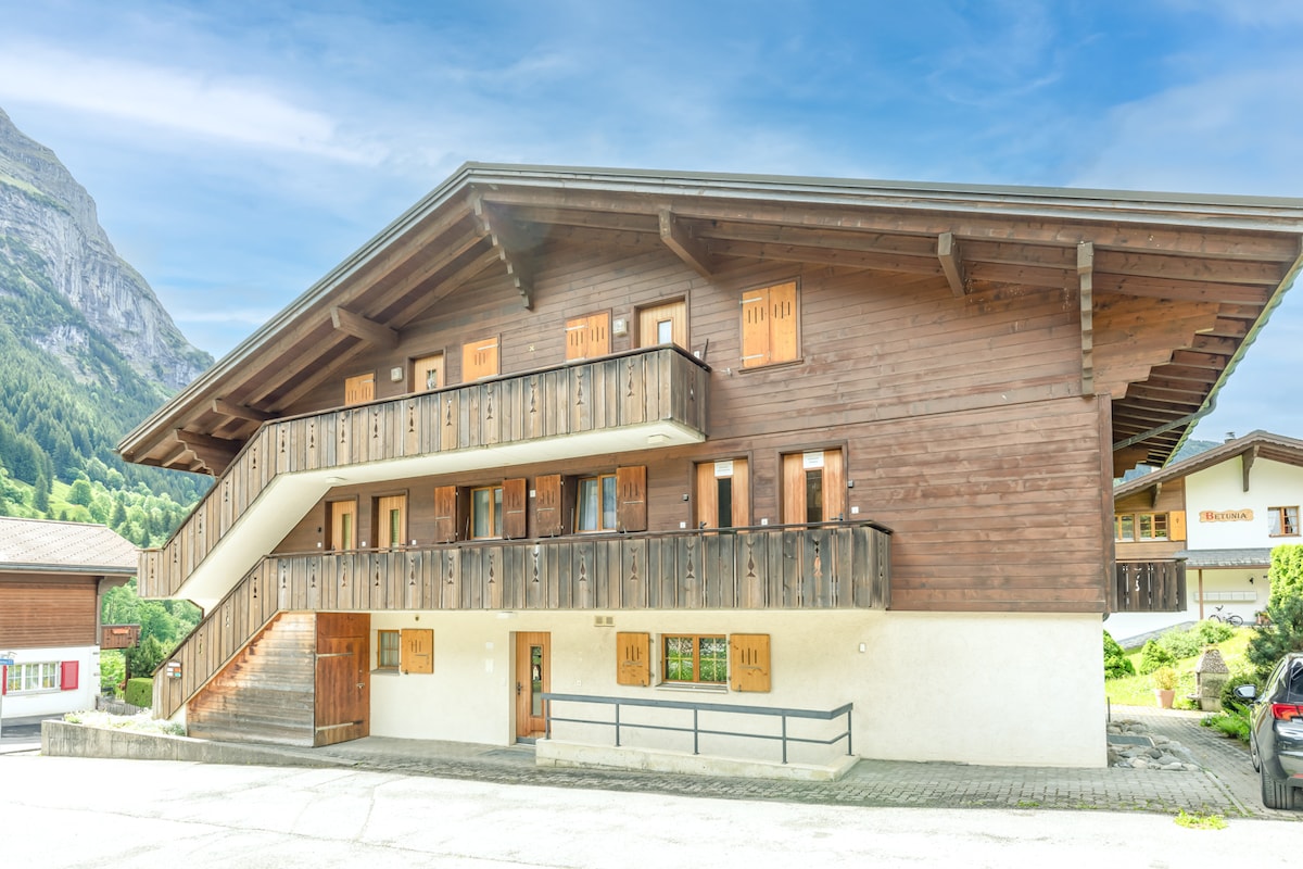 Cosy and well equipped appartment right in the skying or hiking area. Wonderful balcony facing the Eiger north face, in a charming Chalet. The appartment can be combined with two other appartments. Private parking and playground. Private ski depot.