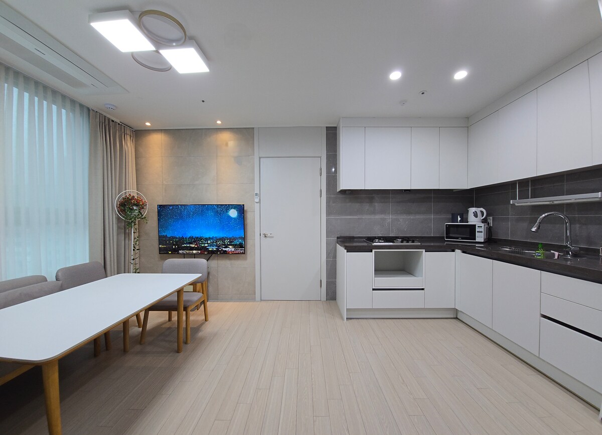 PC. 40 inch TV (Netflix, Disney+) High quality queen bed. Wide one room. Very near Dujeong Station just 3 minute by walk.