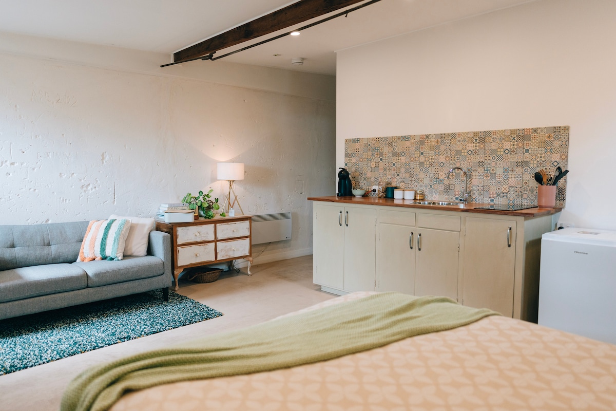 Our property sits in a beautiful open space, surrounded by paddocks and vineyards. Our boutique accommodation is at the rear of the house and is two separate studios. It has been converted from a stone barn and has the charm of age but with the comforts of modern life. Each studio contains a luxurious bedroom/living area and separate bathroom. Our property is also used as a wedding venue and the gardens are yours to enjoy. Our new cellar door is nearby for you to sample some wine.