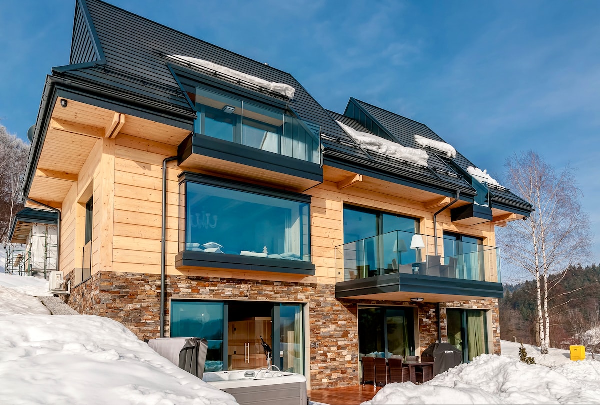 Exclusive villas on the Słotwin slope Wille Mikulski are located on the southern slope of Słotwiny in Krynica-Zdrój, from where there is a beautiful view of Góra Parkowa, ski lifts, the Observation Tower and Beskid Sądecki. Near the villa, there is the first observation tower in Poland built in 2019 in the treetops, which quickly became an attraction throughout Poland. It is part of the Słotwiny Arena Ski & Bike Park complex.