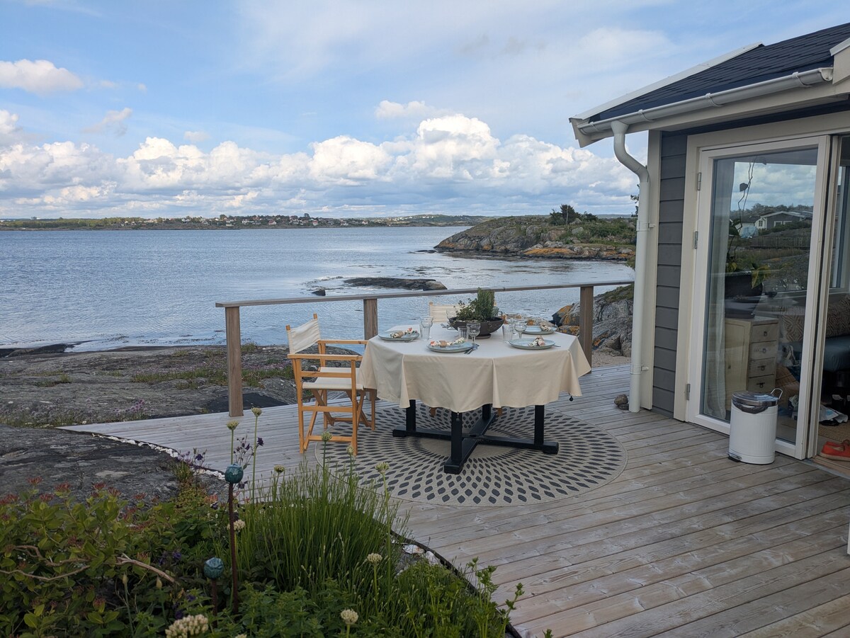 Cozy cottage in very nice area right by the sea. Quiet and nice with sun all day. Lovely large patio with larger table and BBQ for wining and dining. In addition, own private terrace with deck chairs. Only 2 minutes walk to tram taking you directly into town in 20 minutes. Or take the tram 2 stops to nearby Saltholmen and take the ferries to the lovely southern archipelago.