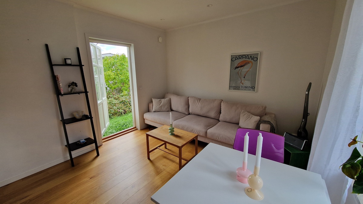 Part of outhouse on the host's property. Interior renovation is during 2022-2023. About 20 sqm. New bunk bed July 2024. Outdoors there is access to a playground and outdoor furniture with barbecue. The plot is shared with the host's family.