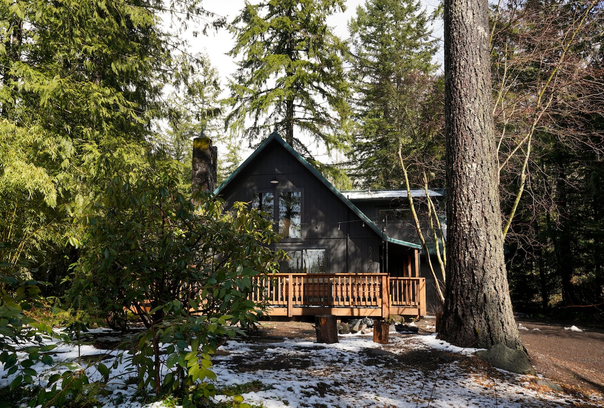 A Scandinavian inspired cabin, with hot tub, that sits on the East Sandy River near Mt. Hood, Oregon. Surrounded by beautiful nature, you will feel completely relaxed here while you take in all that Mt. Hood has to offer! It's an easy hour drive from Portland & just down the road from cute mountain villages where you can find eats & fun. Enjoy winter skiing or summer waterfall hikes! It's Magical here. Come stay, the adventure awaits you!