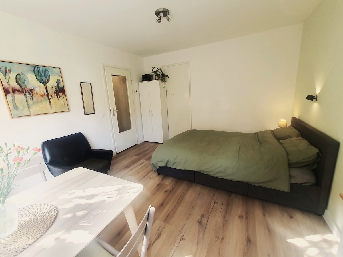 A wonderful private Studio on the ground floor. It has a spacious, light room with a double bed, a sofa and a (work)table. It has a private frontdoor, an entrance/hallway and a private bathroom. Enjoy the sun on the bench in the front garden. My wife and I live next-door: the connecting door is locked to guarantee privacy. An intimate and quiet street in the lively Amsterdam East. Within walking distance lots of trendy restaurants, shops, museums, parks, subway station, Railwaystation.