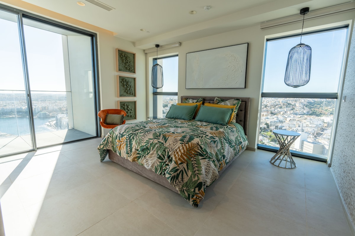 Welcome to your luxury sky-high escape in Malta’s architectural masterpiece. Perched on the 27th floor, this ultra-modern apartment offers unbeatable panoramic views of the Mediterranean, from Portomaso Marina to Spinola Bay and Balluta Bay, creating an unforgettable backdrop for your stay.  Whether you’re here for romance, business, or a Christmas getaway, this home combines stylish design, comfort, and a prime location in vibrant St. Julian’s, one of Malta’s most desirable neighborhood.