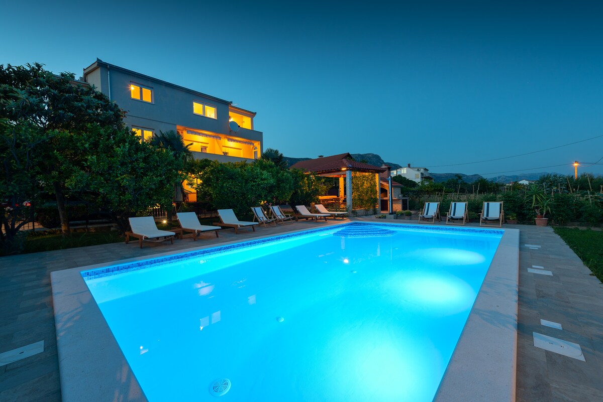 The brand new apartment in a family house provide you and your family a comfortable stay in a quiet part of Kastel Luksic . Guests have access to a large garden surrounded by greenery, big swimming pool and a garden pavilion with barbecue that is ideal for social gatherings. Apartment has a parking space and a terrace. Your hosts are at your disposal to make your stay in our apartment as enjoyable as possible.