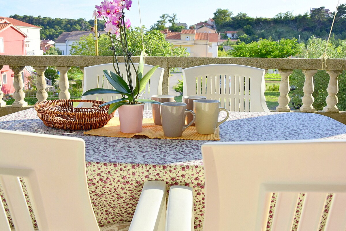 Dear guests! We have just finished the complete renovation of our apartment that we've started in autumn 2021st. We hope that you will enjoy it even more than before. All of you who come to visit us in May or in September, we shall take on a gratis boat excursion to see beautiful Rab beaches. Our apartment is cosy, and close to sandy beach. It has two bedrooms, kitchen, dinning room and living room, bathroom, balcony and terrace where is also a dining table. Welcome!
