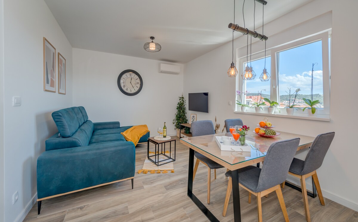 Enyoj this spacious and sun-field apartment designed to make you feel at home. The proximity of the beach 60 m, incredible and open view of the blue sea and sky and all the necessary facilities with which the apartment is equipped, allow the guest to have an ideal vacation from busy everyday life. The proximity of the city of Trogir 4 km, the city of Split 30 km and airport Split 8 km are within easy reach. All this makes this place an ideal place for your beautiful and relaxing vacation.