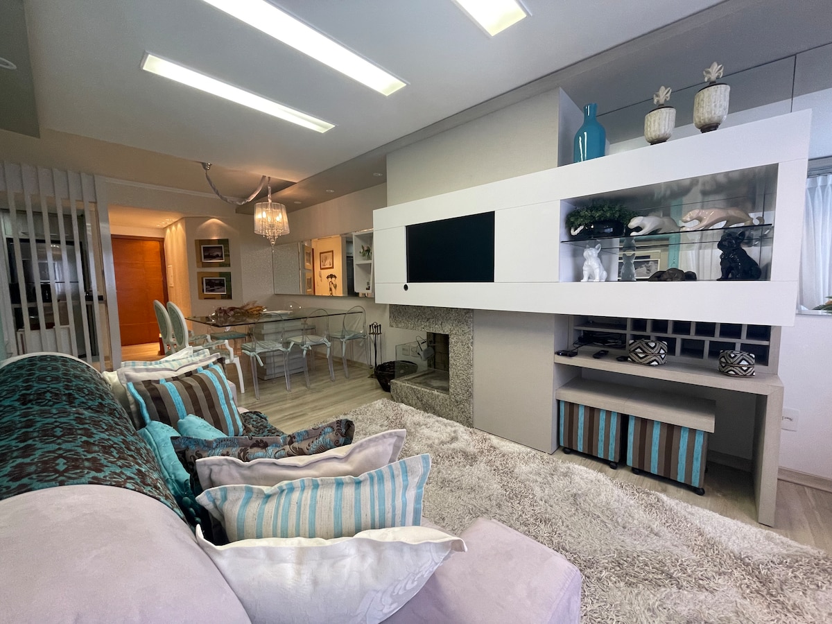 This amazing, high-end apartment has been completely redesigned! It offers 180 sq. meters and elegance in every detail, large windows with exclusive panoramic views of the Quilombo Valley, 70" Smart TV in the living room and 43" in two bedrooms! Also, it's only 2 blocks from Rua Coberta! Because it is centrally located, you can do many things on foot, having the convenience of leaving the car and contemplating with tranquility everything that Gramado has to offer!