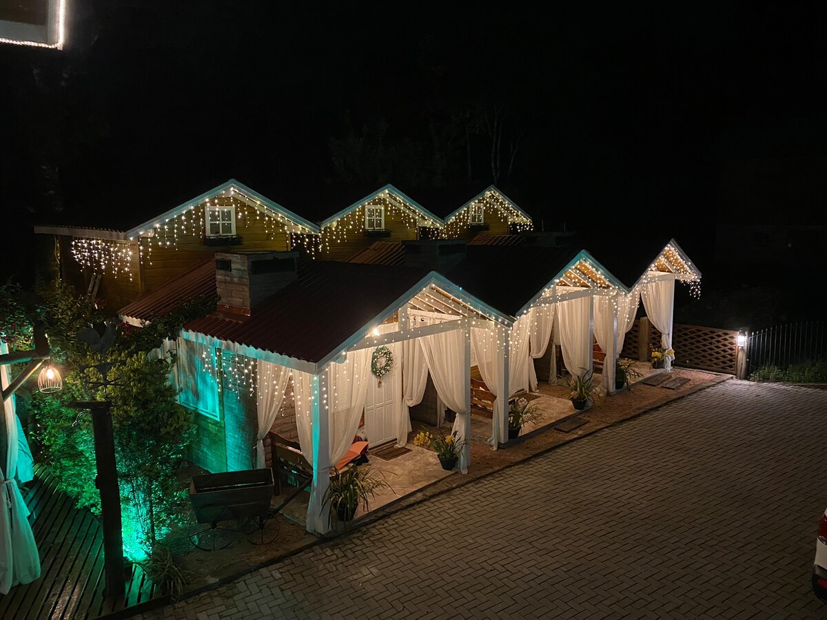 Other chalets: airbnb.com/h/chalemagia2 airbnb.com/h/chalemagia3 Enjoy a lot of comfort and tranquility in our charming chalets with a Jacuzzi, hot and cold air-conditioning, heater, outdoor fireplace, in Canela, RS, 5 km from the center of Canela. The chalets have an upper floor bedroom with a double bed and the option of an additional single bed. On the ground floor, there is a double sofa bed in the living room. We currently do not have accommodations for pets of any size.