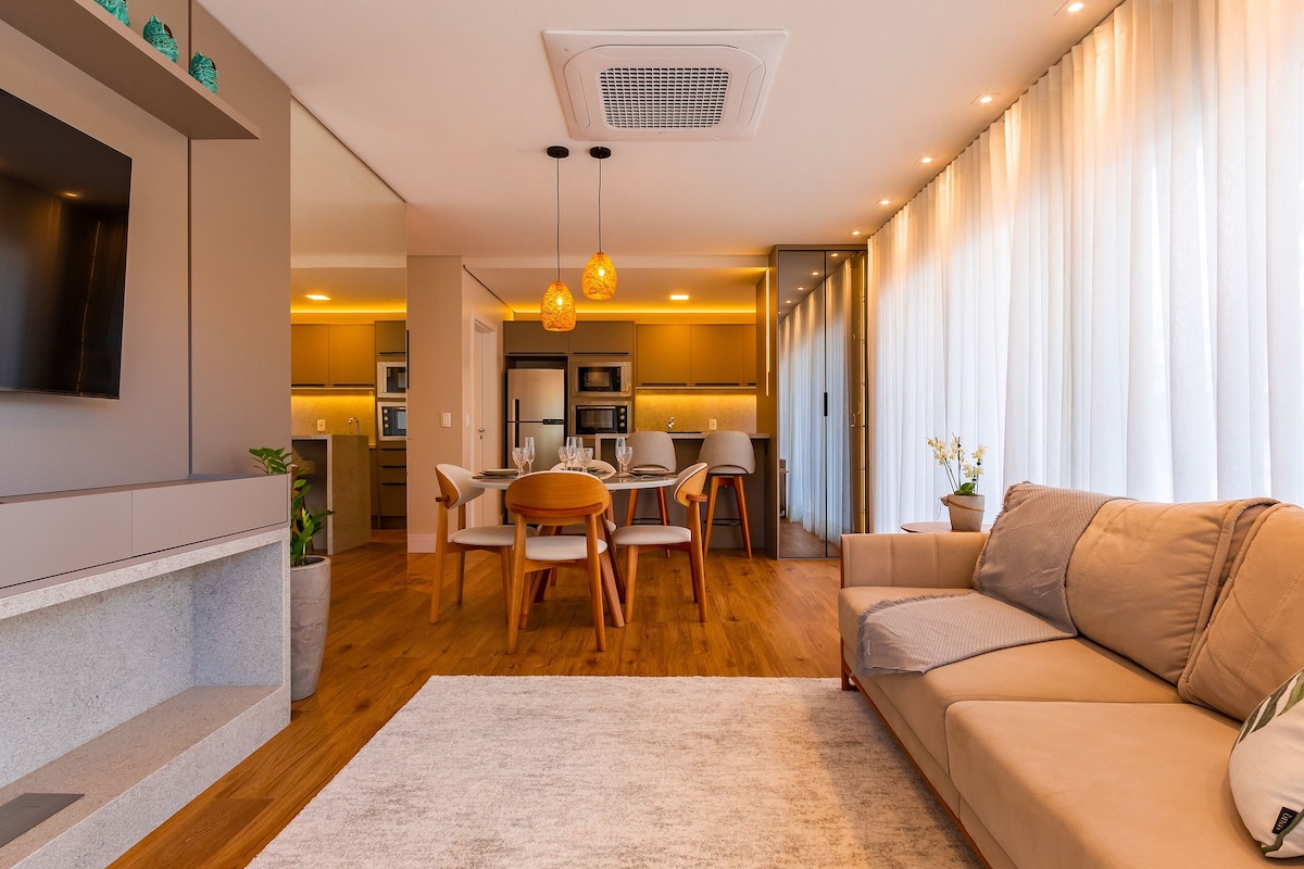 Come and enjoy wonderful moments. The apartment is located next to the following tourist attractions: Ferris Wheel; Mundo A Vapor; Space Adventure (Nasa Museum); Fashion Museum and Havan store. It has 100 m² of private space, a full kitchen with a barbecue grill, a large living room with a fireplace, a hot and cold air-conditioner, a Smart TV with Netflix, a super comfortable sofa, a balcony overlooking the tourist attractions (with soundproofing), and a private parking space. Perfect for couples and families.