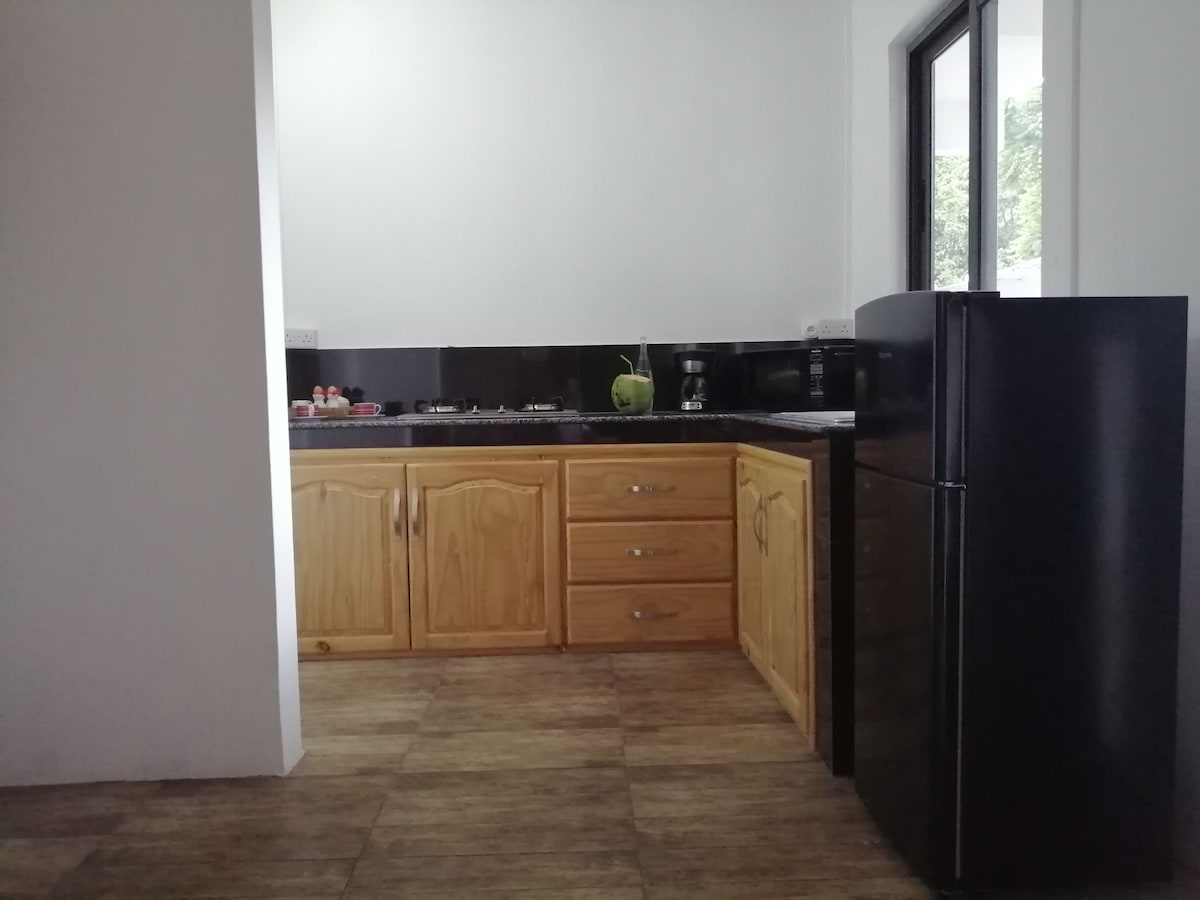Auf dem Grundstück ist das Familienhaus meiner Familie und im hinteren Bereich befindet sich der idyllische Ferienbungalow, umgeben von üppigen Pflanzen und Obstbäumen deren saisonale Früchte Sie nach Belieben genießen können. Beim Frühstücken auf der Terasse hört man Tropischen Vogelgesang. Farbige Vögel sitzen in den Bäumen. 2 Gehminuten zum Strand, 1 min zum Supermarkt ------------------- Auf Anfrage (kostenpflichtig): Flughafentransfer Mahlzeiten Ausflüge île aux Cerfs Babybett