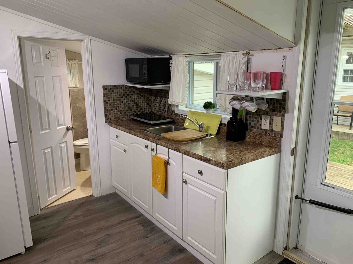 Super cute cottage located in Grand Bend village. A short stroll to all Main Street's quickly growing amenities and a 5 minute walk to Grand Bend's famous Blue Flag Beach. It features a 1 bed, 1 bath, kitchen and living room in main unit plus a separate 1 bedroom bunkie (double bunk beds) with its own bathroom. The kitchen is functional with a full fridge, cook top, microwave and toaster oven but there is no oven. There’s also a propane BBQ for use. Guests must bring sheets and bath towels.
