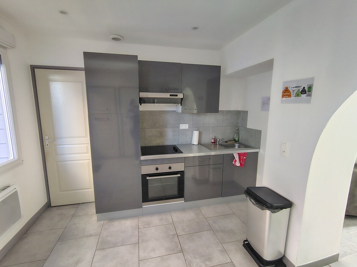 Ultra bright duplex apartment located in the heart of Petit-Fort-Philippe, on Place Calmette, close to all local shops within walking distance. Completely renovated. Ideal for a couple or professionals passing through. 2-min walk to the beach and 2-min drive to the CNPE. Free street parking. The cleaning fee also includes the provision of sheets and towels for your stay. Pets are welcome, ensuring the cleanliness and protection of the sofa.