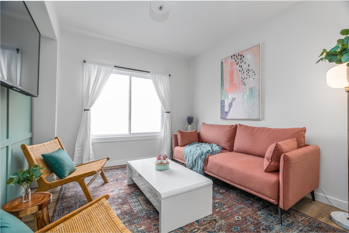 Enjoy a stylish experience at this centrally located home in London, ON. The home is professionally designed to stand out from the rest & give you the perfect picturesque space. Your kitchen will be well stocked with the basics, making it easy to cook from home & enjoy our very comfortable, pink dining chairs! Being in the DOWNTOWN location allows you to be only steps away from local amenities & still have free parking on premises. Best of all, Tim Hortons is 50 meters away! PLEASE READ BELOW!