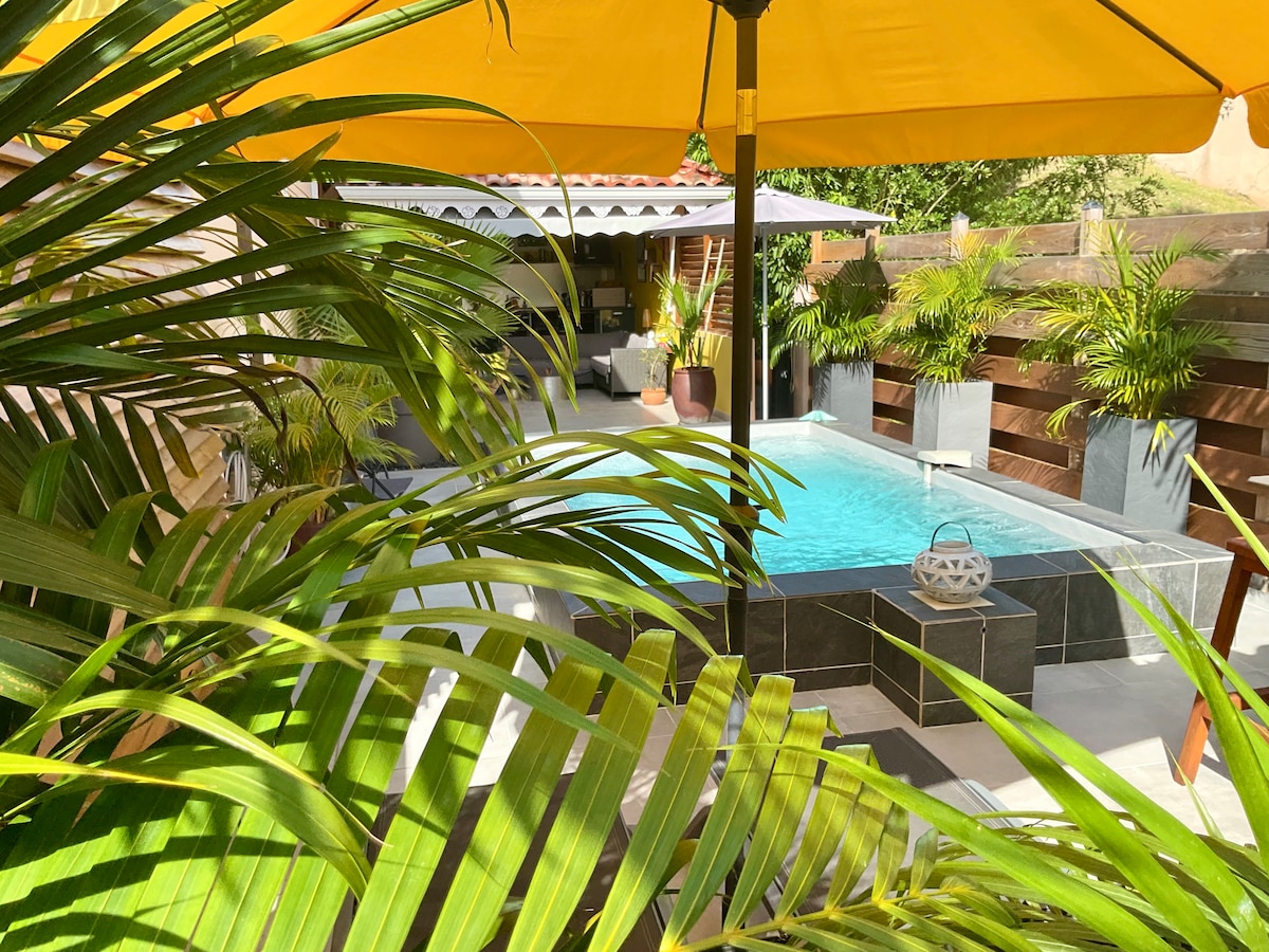 Located at the entrance to the village of Trois-Ilets, a tourist town par excellence, Sapotille is a new luxury wooden bungalow, with deck and private heated pool. Shops and sea shuttle within walking distance. Quiet and ventilated neighborhood.