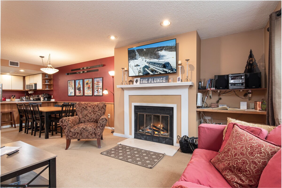 Newly updated condo at Winterplace Okemo. This sunny corner 3 bedroom unit is just steps to the top of the A-B Quad. Completely renovated from floors to ceiling The delightful fireplace place will keep you toasty in the cozy living area. Outdoor ski locker just outside back door. Front door parking, and firewood included. Pool is open and available to renters all year. Hot tub in winter months and tennis courts in summer.