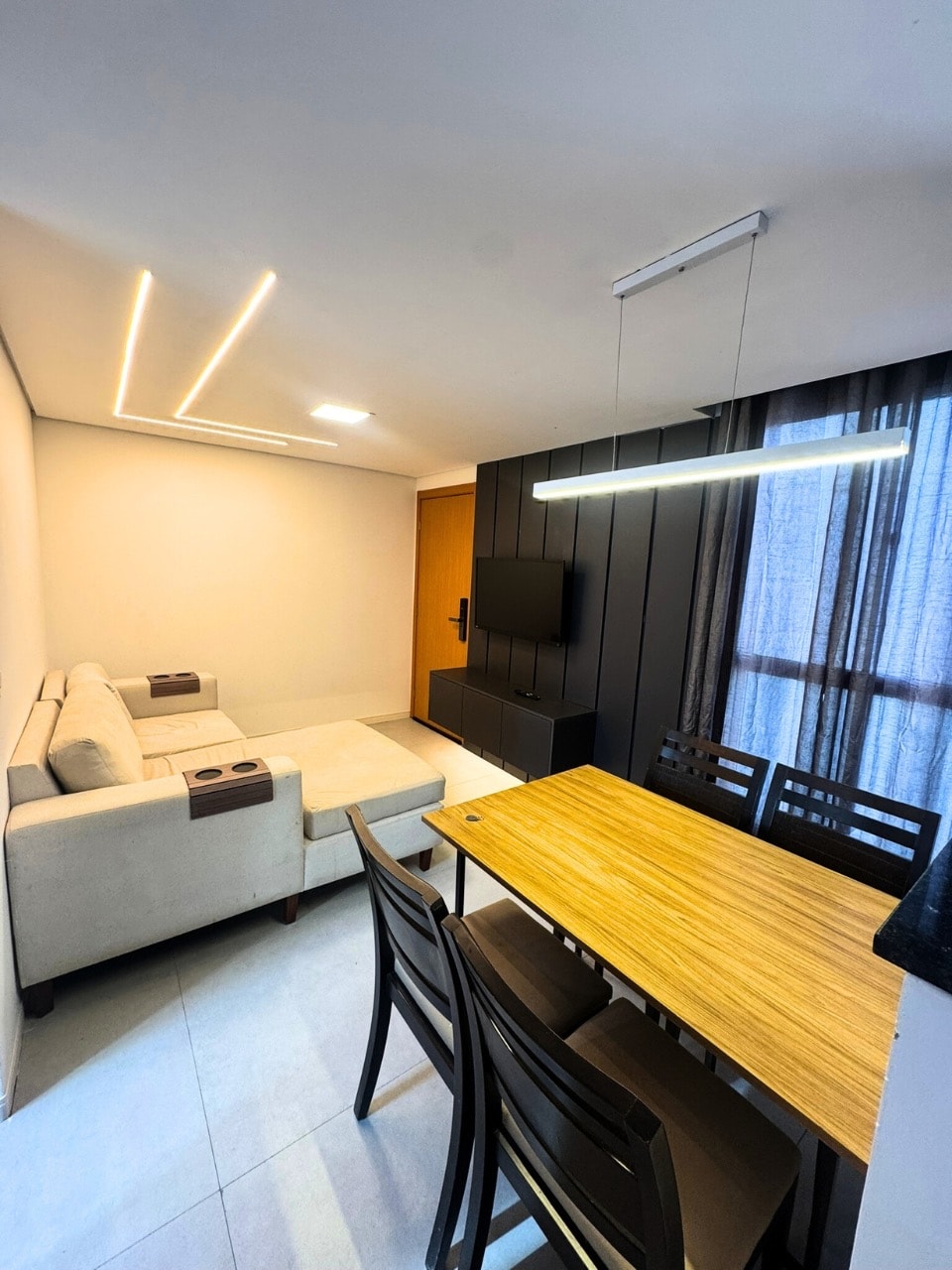 Ground floor apartment in Gravataí, new, modern, safe. Located 100 meters from the main avenue, 5 minutes from the city center, 15 minutes from Poa airport, close to pharmacies, markets, fruit shop, butcher shop, bakery and convenience stores. Covered garage, Wi-Fi, smart TV, voice-controlled lighting, swimming pool and playground, virtual concierge.