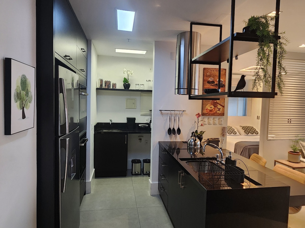 Studio with park view and automation/Alexa. Closed garage, kitchen with basic items and bed/bath linen. Located in a central area, rooftop with swimming pool, gym and coworking. Parque da Redenção a few meters away, Organic Fair and Brique on weekends, Refúgio do Lago gastronomy and concerts at the Araújo Vianna Auditorium. Close to the bars, restaurants and nightlife of the Cidade Baixa/Bom Fim neighborhoods. Easy access to the Guaíba Riverwalk, universities, hospitals and other neighborhoods.