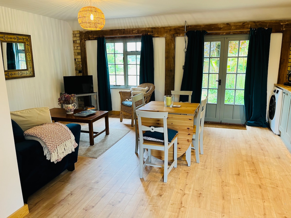 A beautifully refurbished, stunning ground floor apartment in the converted stable block of a Grade 2 listed property. This charming and spacious residence is located on the edge of a sleepy hamlet, 5 minutes from the pretty market town of Saffron Walden, 5 minutes from Audley End station and 25 minutes from Stansted Airport or Cambridge and Racing at Newmarket. This property is not suitable for children under the age of 10 due to very steep duckstairs or for senior guests.