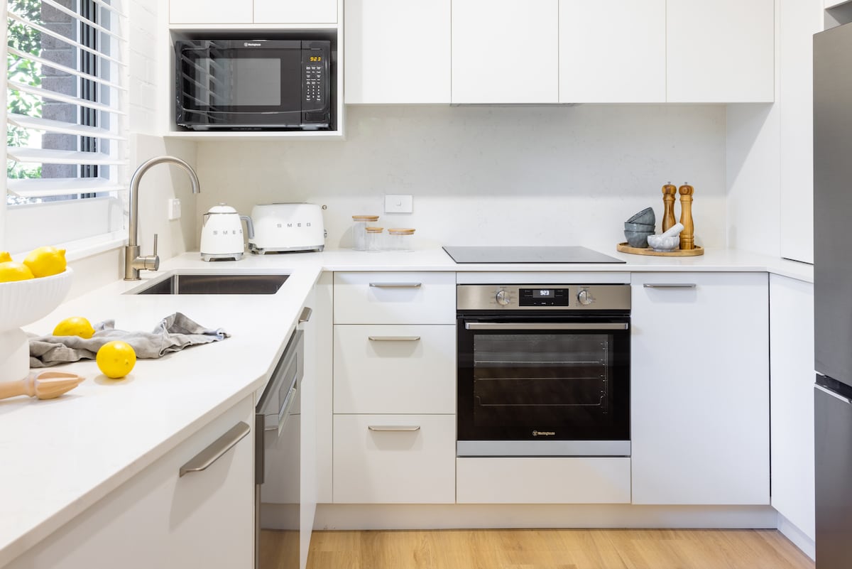Escape to the turquoise waters and white sands of Hawks Nest. Stay and relax in our beautiful two-bedroom modern coastal apartment opposite Jimmy's Beach. This property has been completely transformed through a full renovation in December 2022. Follow us to see more photos! @winneys.place Fully equipped kitchen with dishwasher, full luxury linen (sheets, bath & beach towels) provided as part of your booking.
