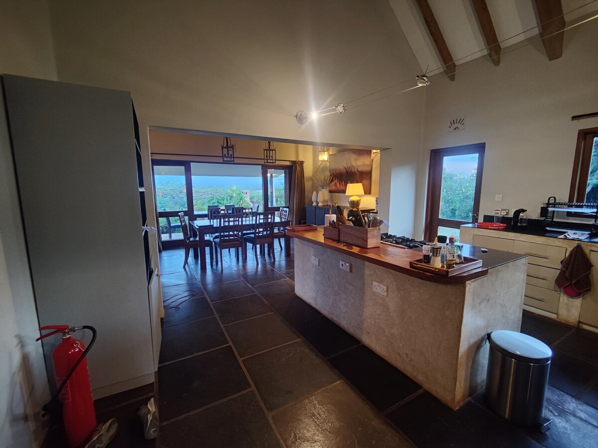 A self catered bush home! An hour from Nairobi. A space to escape from the city's hustle and bustle… Ideal for family and friend gatherings, this property is a tranquil retreat where you can unwind and immerse yourself in the serene environment of the Rift. Info: 2 bedrooms downstairs 1 bedroom is a loft open to living spaces Swimming pool, decks, cliff edges (kids at own risk) Basic oils, spices & tea available Staff accommodation available No chef Check in: from 2pm Check out: 10am