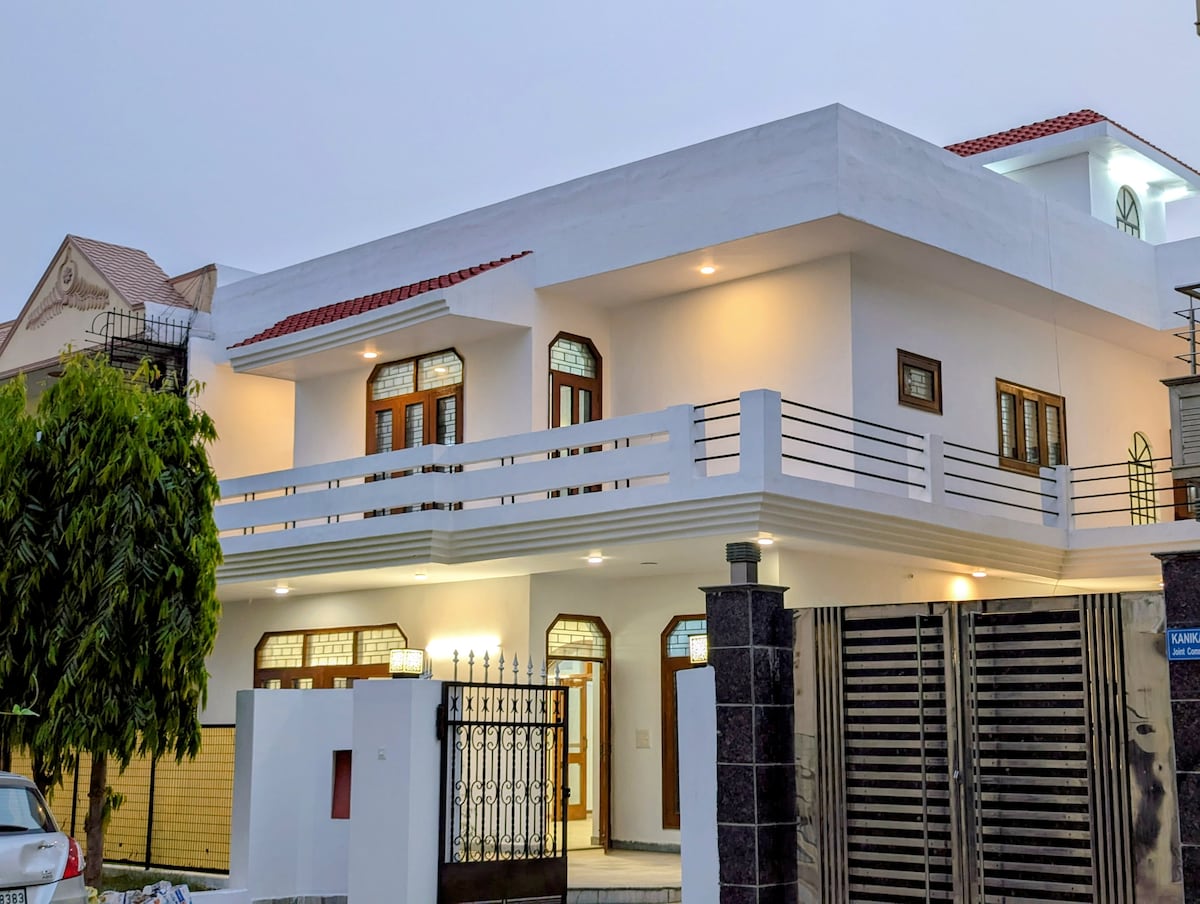 Unwind and feel peace within you at our beautiful Airbnb in the heart of Noida with a modern outdoor jacuzzi. Inside, you'll find a cozy living area, a fully equipped kitchen, and three cosy bedrooms equipped with all amenities. Whether you're relaxing on the rooftop patio or enjoying the soothing waters of jacuzzi, the House of Zen provides a peaceful and unforgettable stay. As it is centrally located all online food or grocery services work here.