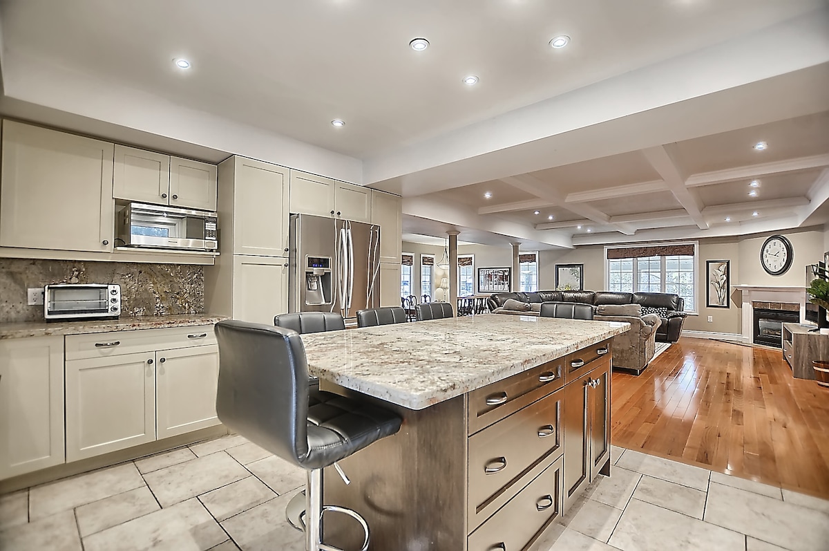 Gorgeous 6 Bedroom Executive Cottage - "Special weekly, monthly, and Winter Discount 20-35%" Short walk to Lake Simcoe, Innisfil Beach Park, Public Beach, Fishing Dock & Boat Launch, winter & summer activity, Ice Fishing. Close to Friday Harbor all Season Resort, many Golf Courses, Sunset Speedway, Innisfil Arena & OLG Slots, short walk to Grocery, LCBO, Pizza Pizza, Tim Horton, Subway Sandwich & Restaurants. Ample Parking. Guest must be 25 years or older in order to book this properly.