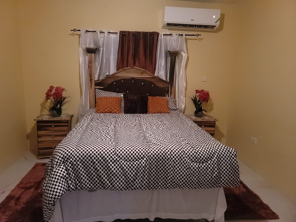 "Terres Bungalow at Palm View Estate" is the perfect paradise getaway, offering you a relaxed and tranquil vacation experience in the privacy of your own 2-bedroom, 1-bathroom apartment. Its located close to the beach in Mammee Bay, 7 minutes from the resort town of Ocho Rios. The apartment offers modern amenities to ensure you have a relaxing and comfortable vacation. Feel at home in this 24-hr gated community, 5-minutes away from restaurants, bars, a supermarket and convenient stores.