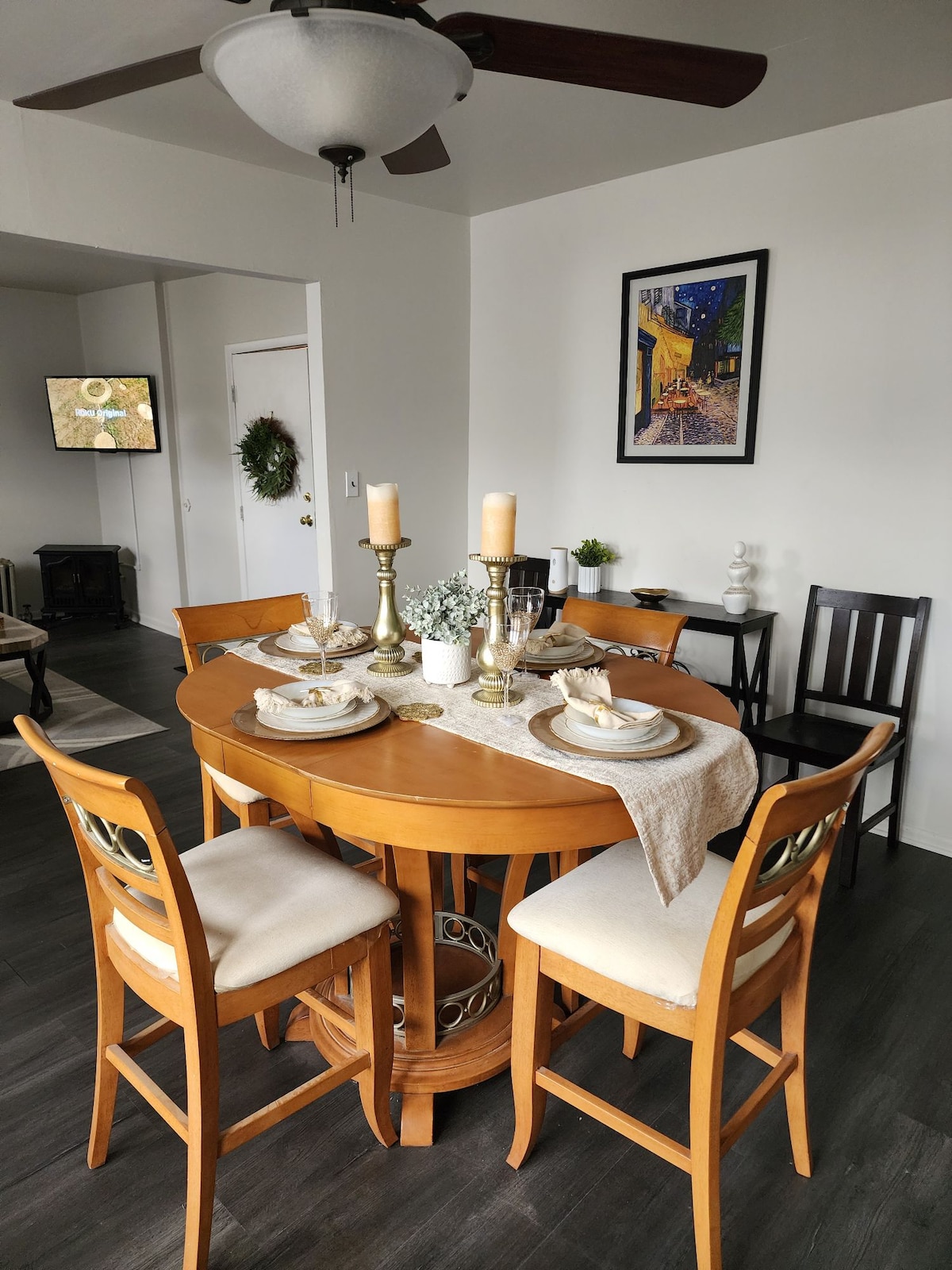 Beautiful, cozy, sunny room with a super comfy L-shaped sectional sofa. Super clean and spacious fully equipped Eat-in kitchen with dishwasher, stove, oven, microwave, regular and K-Cup coffee makers, Micro-wave, Toaster, Pots, Pans, Utensils, and Silverware all provided. The apartment includes (2) 43" Flat Screen TVs; streaming HULU-Live, Amazon Prime, Disney Plus. Also, a little work desk area provided Free washer/dryer access and Free parking, (short-term lease available).