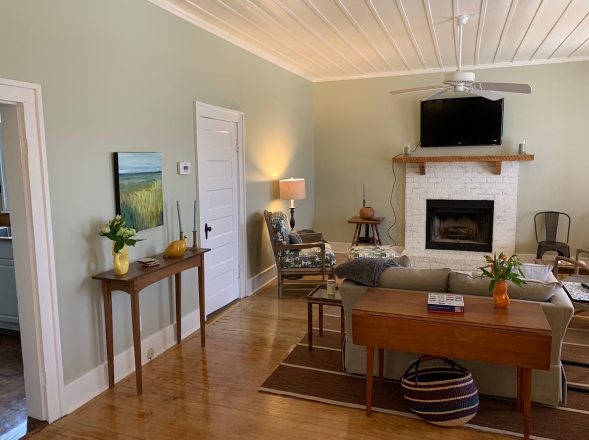 Really neat, cozy 1 bedroom house that sits at the front of 68 acre Plantation in the heart of Greenwood. It is small, for just 1 or 2 people, but feels comfortable and more roomy than one might think. It is very close to downtown and would be perfect for the traveler who needs a simple and convenient place to stay. HOSPITAL: 4 min Lander Univ: 5 min Uptown Greenwood: 4 min High-speed WiFi, Keurig Coffee, Self Check-in, Washer&Dryer. All linens, towels, & toiletries included.