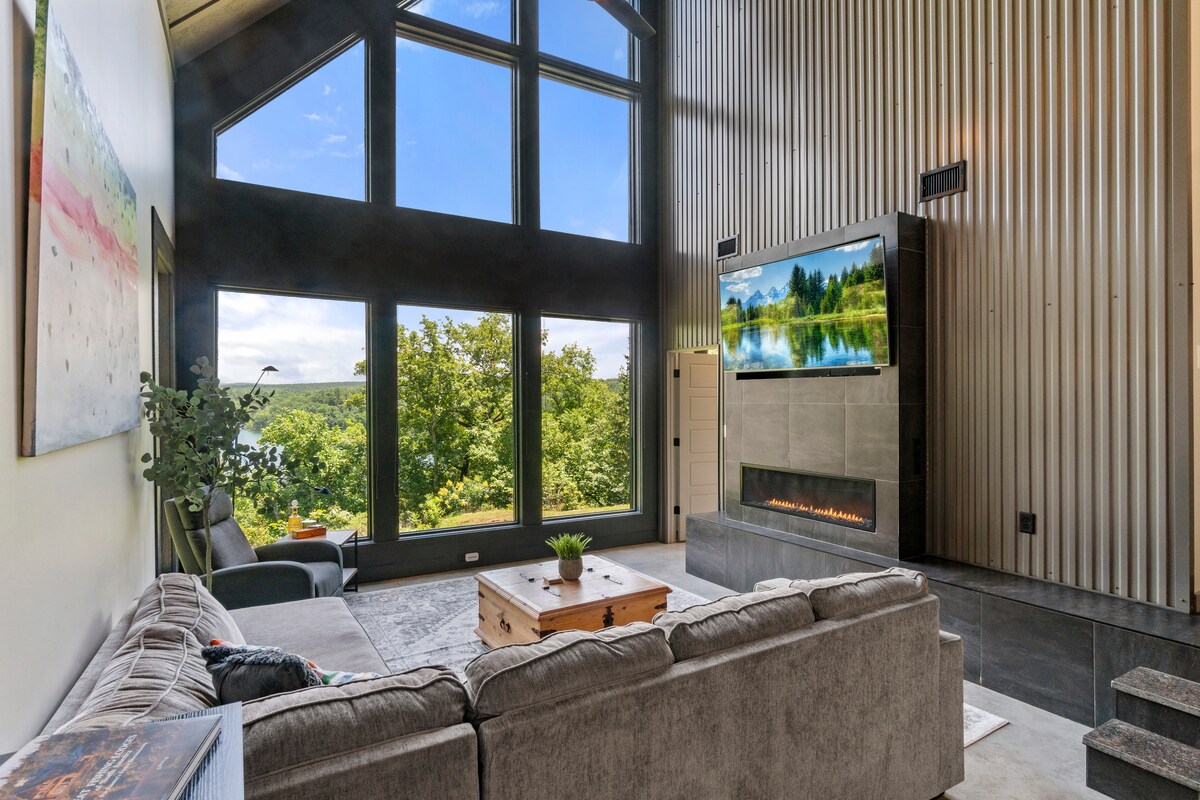 Our charming mountain-modern waterfront lakehouse is perched atop a bluff near a beautiful wedding venue. A public boat launch is just 1 min away, and the jumping cliffs in Snakehead Cove are a short/bike/ATV ride. Enjoy guest passes to amenities like pickleball/tennis courts, 3 pools, bowling alley, Hart Health Center w/indoor pool, mini golf, Mountain Ranch & Indian Hills Golf Course. 90 miles of ATV/UTV trails. Jannsen’s Lakefront 15 min away, and…THE LAKE! ⚠️ Many amenities are seasonal ⚠️