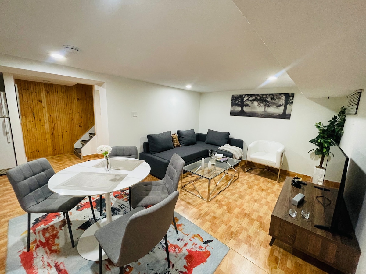 Large bedroom with queen bed and one small sofa bed (perfect for kids) Large sofa bed in living room area This cozy basement unit has a separate entrance for full privacy. - Right next to Humber River - 10 mins away from Lakeshore - 10 mins away from High Park - 15 mins away from Downtown - Bus, streetcar and subway station nearby - Parking available during your stay. This home is located in a quiet/safe neighborhood close to grocery stores and more!