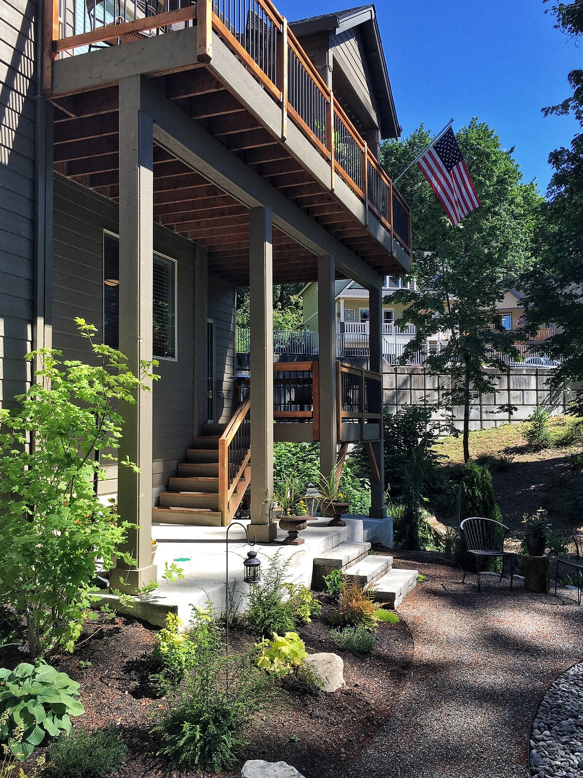 Enjoy relaxing NO CHORES TO DO beautiful view from private balcony and bedroom! Comfy King size bed, walk- in closet, writing desk and 2 chairs. TV and WiFi . Only 17 minutes drive from the Airport and super close to many waterfalls,hiking trails and 4 minutes to Edgefield, 5 miles from Blue lake, a few minutes from Multnomah Falls, Bridal Veil Falls, and so many others Gorge falls and hiking trails, Columbia river adventures. it is located in safe neighborhood. Ask about a romantic package!