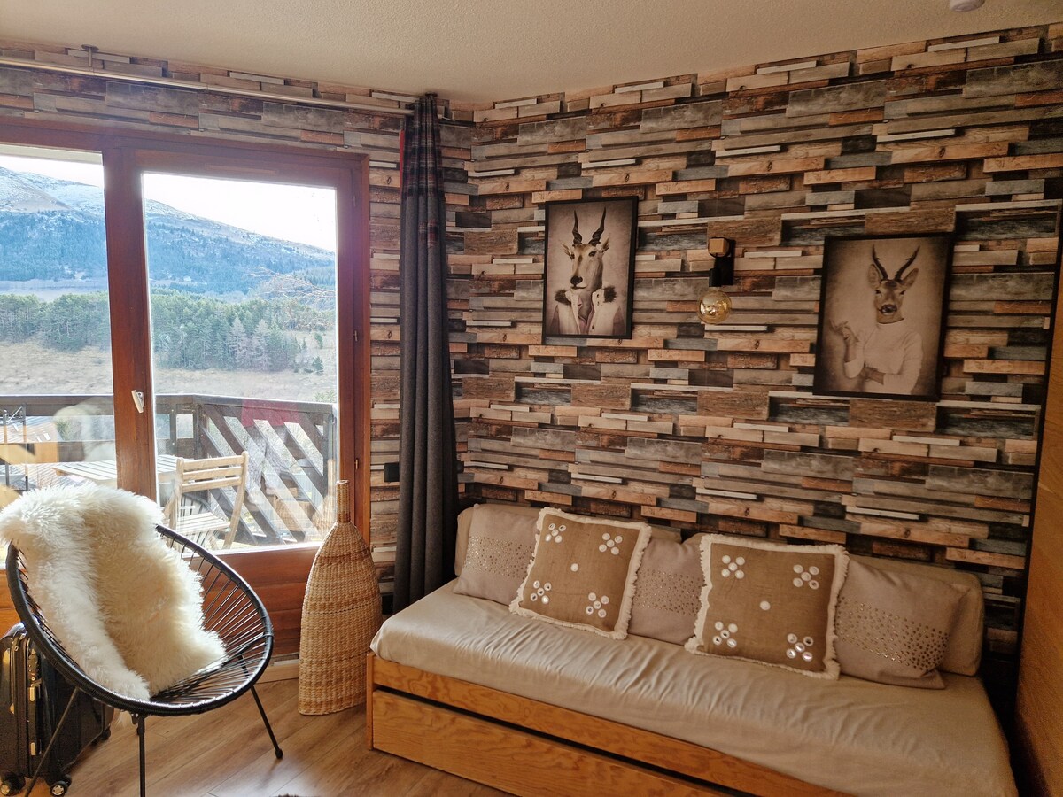 Studio 4P 32 m2 panoramic view at the foot of the slopes