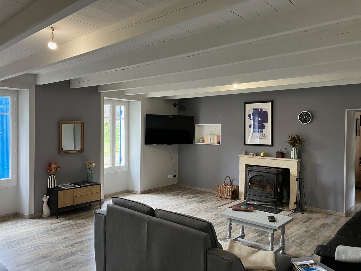 In the heart of the Royan–Saintes–Rochefort triangle, discover a peaceful countryside haven just 25 km from the beaches. This spacious 110 m² cottage sits on a 2-hectare 19th-century wine estate. Enjoy your private terrace and enclosed garden. From mid-April to early October, take a dip in the 27 °C heated saltwater pool, shared with only two other guests. A true paradise for lovers of nature and tranquillity.