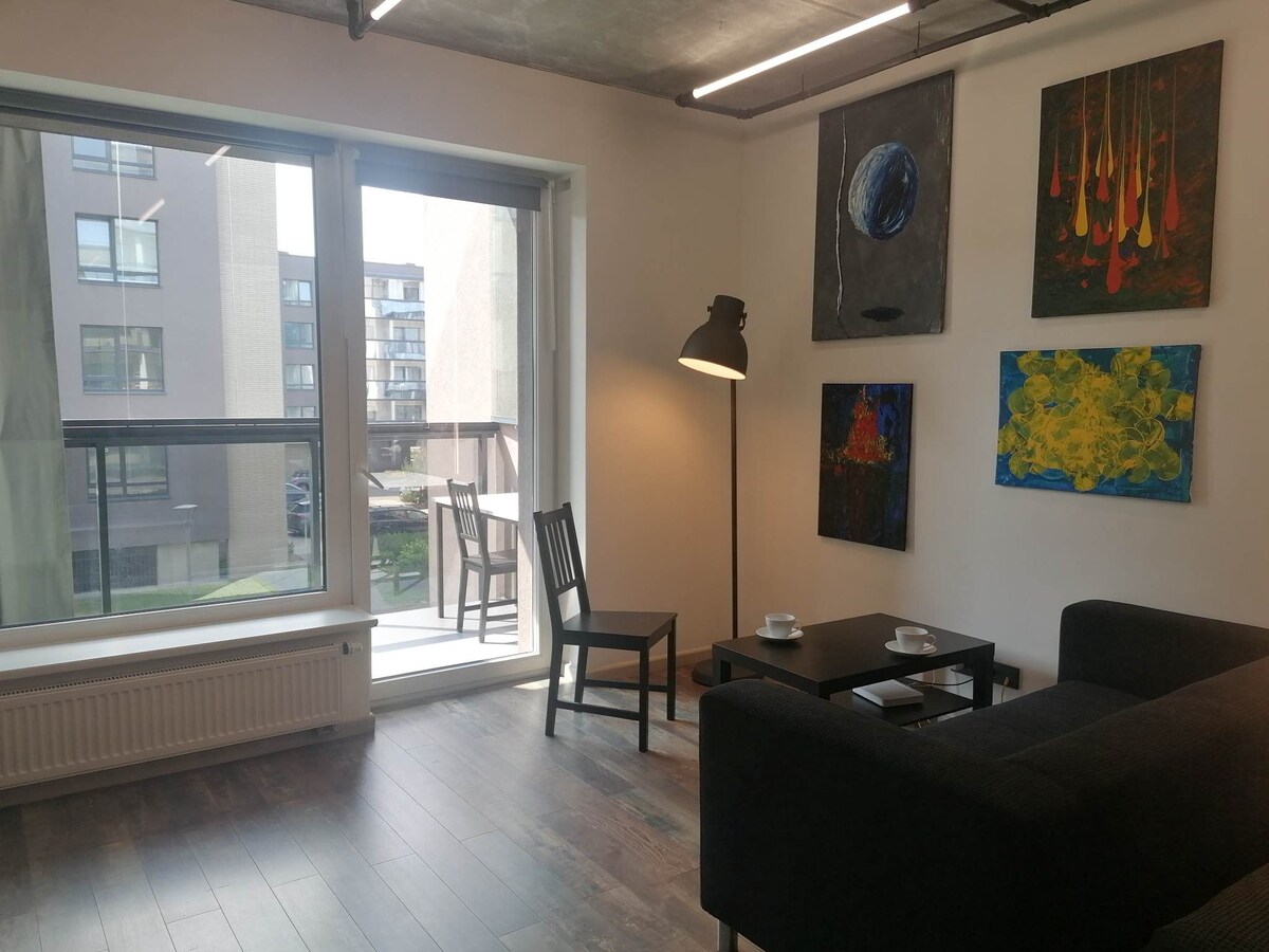 INCREDIBLE PANORAMA!!! Studio apartment 50 sq. m. Here, through the showcase windows, terrace and balcony, you can see probably one of the most beautiful panoramas of the city - the Neris bend and the Old Town will inspire you with new ideas every day. Plan your routes calmly: you can easily reach everything from this home.
