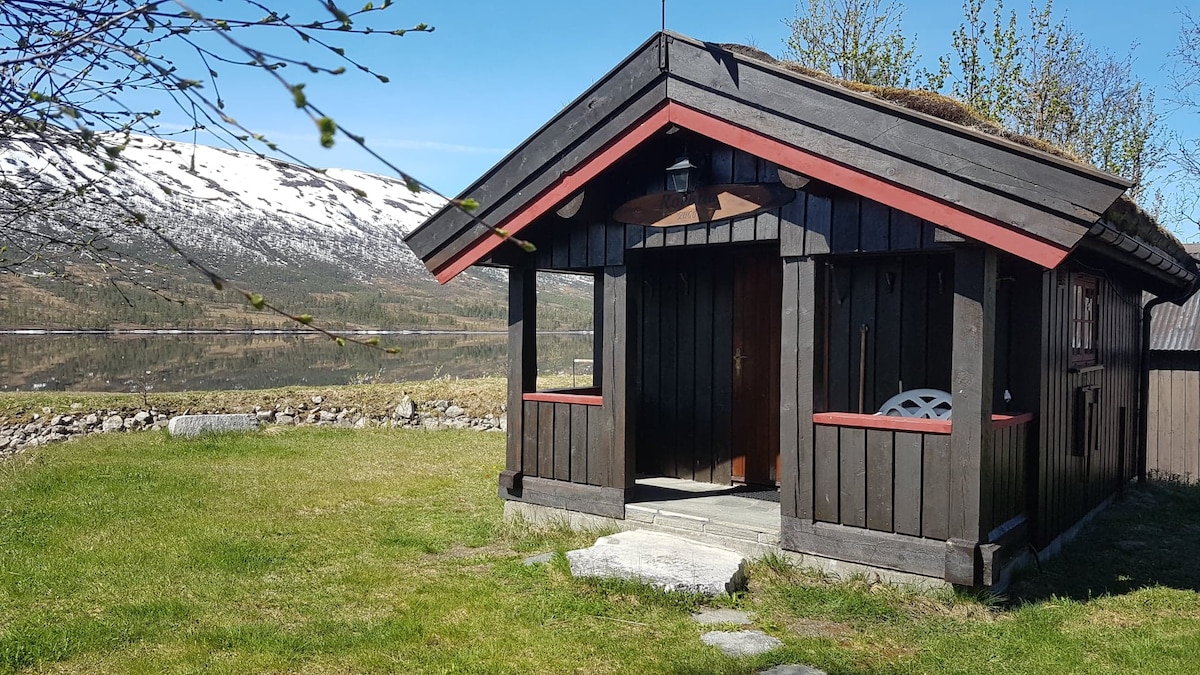 Trollstuggu offers tranquility, a simple life and a perfect starting point for hiking and skiing, located in beautiful Vindøldalen, a ~600m walk on path up from parking. Located in the mountain side, the cabin offers panoramic view of the valley. Main room of 20m2 with kitchenette, 6m2 bedroom with 3 beds, veranda w and w/o roof and Biolan toilet in shed. 12 V electricity from solar cell. No running water in cabin but from nearby stream. Wood stove in cabin and gas burner and fire pan outside.