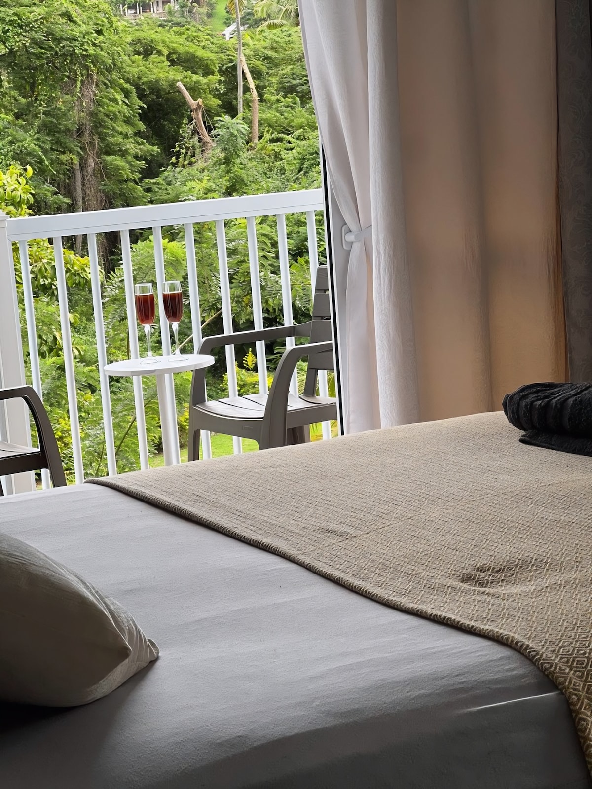 One of our guests, upon seeing the view immediately said "There are no words to describe this!" Nevertheless, we shall try; beautiful, tranquil, zen and serene! A modern house with spectacular views of Anse Galet Bay beneath, Martinique beyond and the green treetops below! Wake up to the sound of birds chirping and surf crashing! 10 minute drive from the beach, shopping, Pigeon Point Historic Fort and 3 minute drive away from great golfing! Bienvenue.........everything is within reach!!