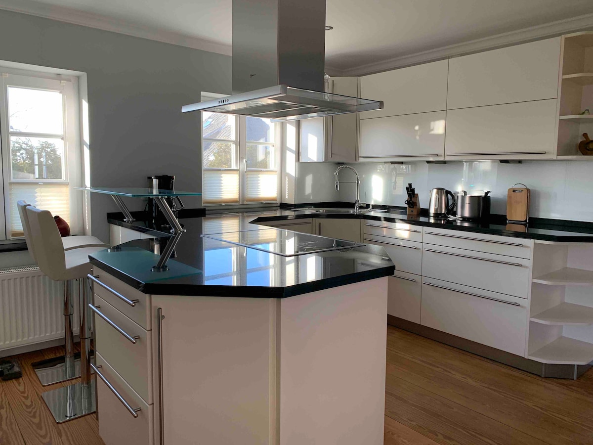 This spacious accommodation in an architect's house captivates above all by the open light-flooded staggered floor with large roof terrace and free-hanging, open and 360-degree rotating fireplace. The window front can be opened completely. The refined kitchen features a portafilter machine and Bora Professional System with Teppan. The surround sound system provides a special sound experience. On the second floor are the three bedrooms and bathrooms and an open salon area.