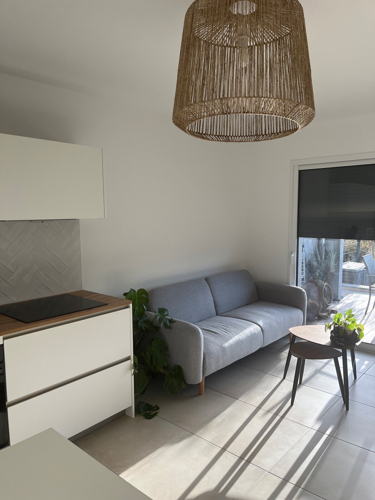 Beautiful new apartment, quiet, in a small area 2 minutes from the beaches and shops. 46 m2 fully decorated on the theme "BLANC PURETE" including: a fully equipped kitchen (dishwasher, oven, etc.), a living room with large sofa bed, a large bedroom with dressing room, bathroom with walk-in shower, 21 m2 terrace and 30 m² garden. Ideal for 4 people. Premium bedding, sheets and linen provided. Cleaning included. Access from Ajaccio 20 min. approx.