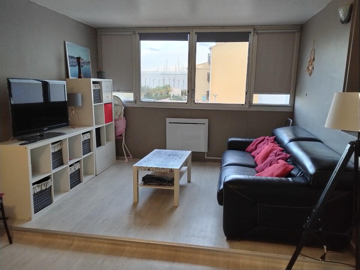 Quiet apartment, very nice, perfect condition, air-conditioned Secure private parking. 2 adults 2 children Dishwasher, washing machine, pyrolysis oven, microwave, new 160 bed. 5-minute walk to the port and Grazel beach. In the resort, water sports. Many mountain bike trails or hiking in the Clape massif. Water park 5 minutes by car, with relaxation and fitness area, indoor pool, outdoor recreational area with slide and paddling pool.