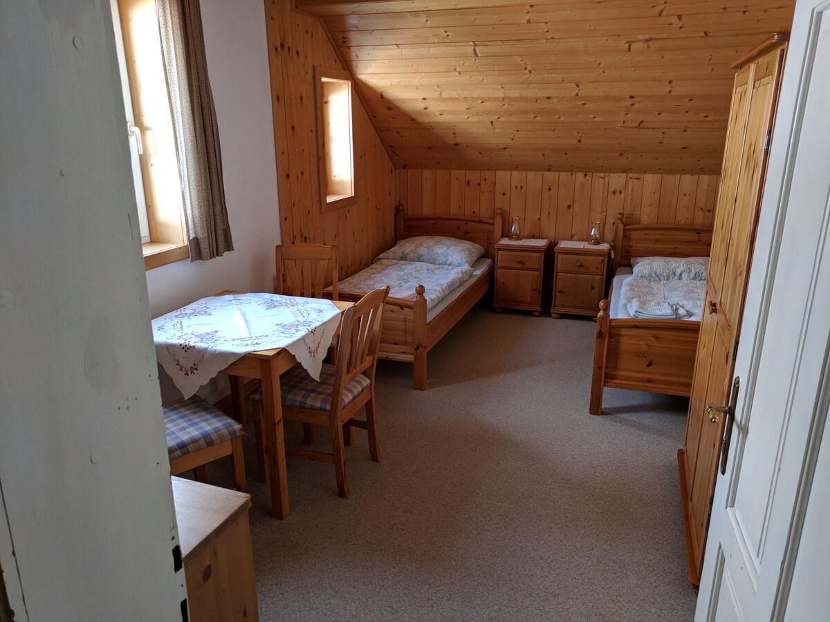 Apartment 1. Newly built. The best vacation accommodation for families, couples, nature lovers and active sports enthusiasts. Enjoy an exclusive four-star comfort with a fantastic mountain view in an elevated, quiet and sunny location on the outskirts of Bad Aussee during your golf, swimming, skiing or hiking vacation in the Styrian Salzkammergut. We personally welcome you to our chalets with a small gift of organic olive oil, wine and chocolates.