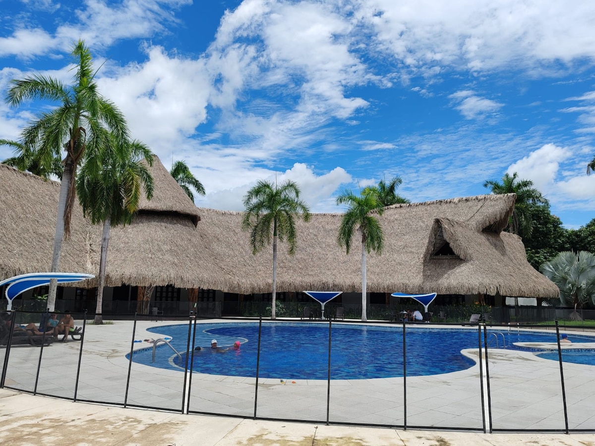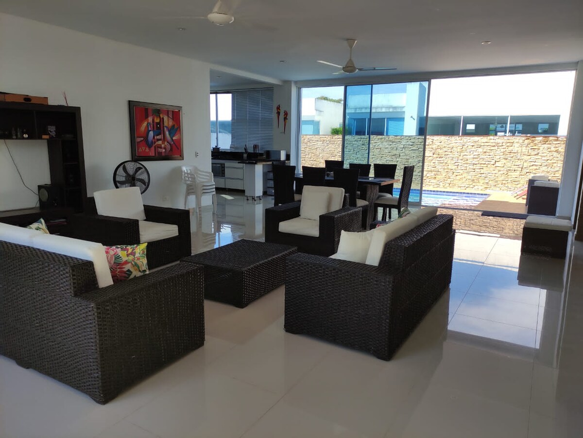 Hermosa casa de descanso en condominio cerrado, ideal para descansar, y gozar de la privacidad, habitaciones con ventilador y aire acondicionado, sala amplia y acogedora con juegos de mesa, lo más importante disfrutar de una piscina privada a la cuál pueden acceder a cualquier hora.