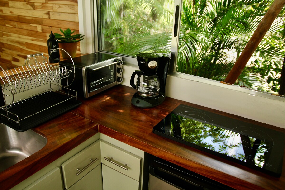 This wonderful accommodation is located just minutes from Playa Carrillo and is certainly unique in its presentation. It is a half-bus, specially adapted to contain a queen size bed, a small bathroom and a cooking area. Located under a beautiful Tamarindo tree, which provides the studio with some shade, but most importantly gives it an almost fairy-like touch. This Studio is the perfect place to retreat and enjoy your vacay in full Pura Vida style 🌴