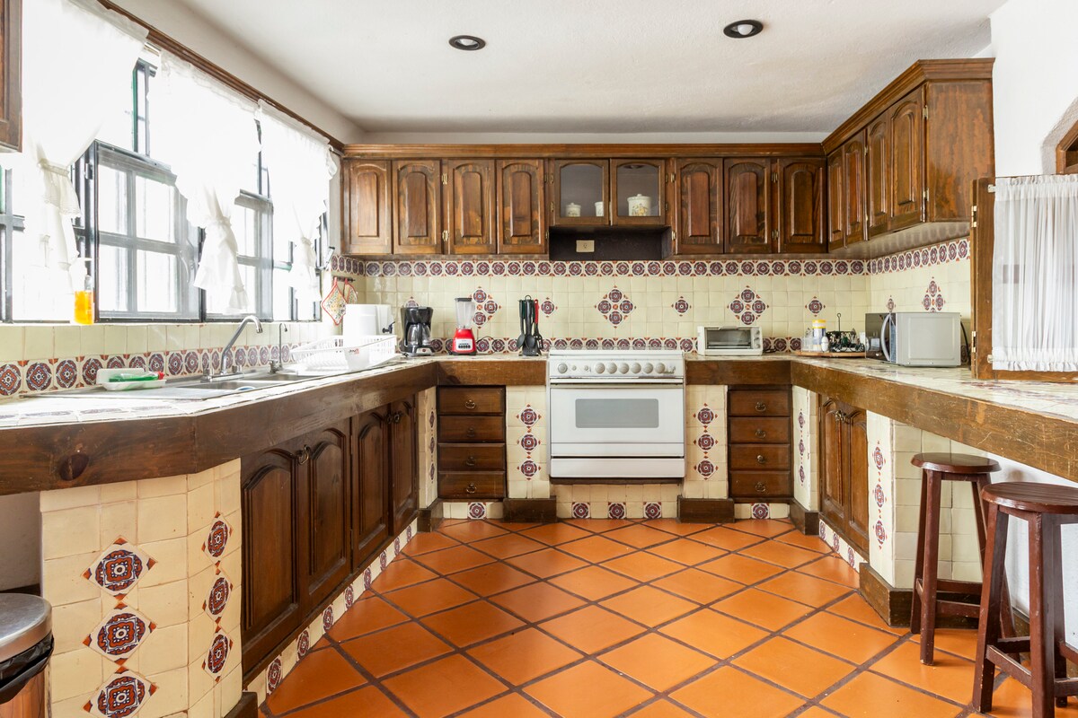 Beautiful country house very close to downtown, it has a swimming pool and a paddling pool for the little ones, the garden is very spacious with a barbecue area and a warm fire pit for an unforgettable evening. Fully equipped and large kitchen, the rooms are located around the main patio. The patio has two cozy rooms, dining rooms and a canteen, a pool table and ping pong, parking for about 5 to 7 cars, come and enjoy some magical days in Tequisquiapan and stay with us...