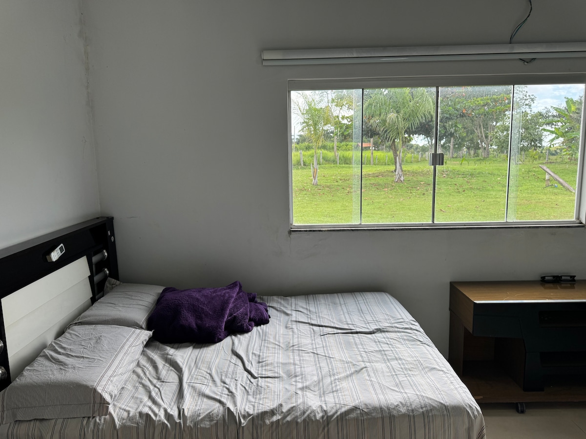 Farmhouse rental 30 km from Goiânia, bedroom with 3 beds, 2 bathrooms, 1 kitchen with a wood-burning stove (wood already cut), a large dam, a river passing a few meters from the kitchen, 2 barbecue grills. If you were looking for a place to rest 20 minutes from Goiânia, you just found it. Note: pets are not allowed (there are other animals on the farm and your pet may get hurt)